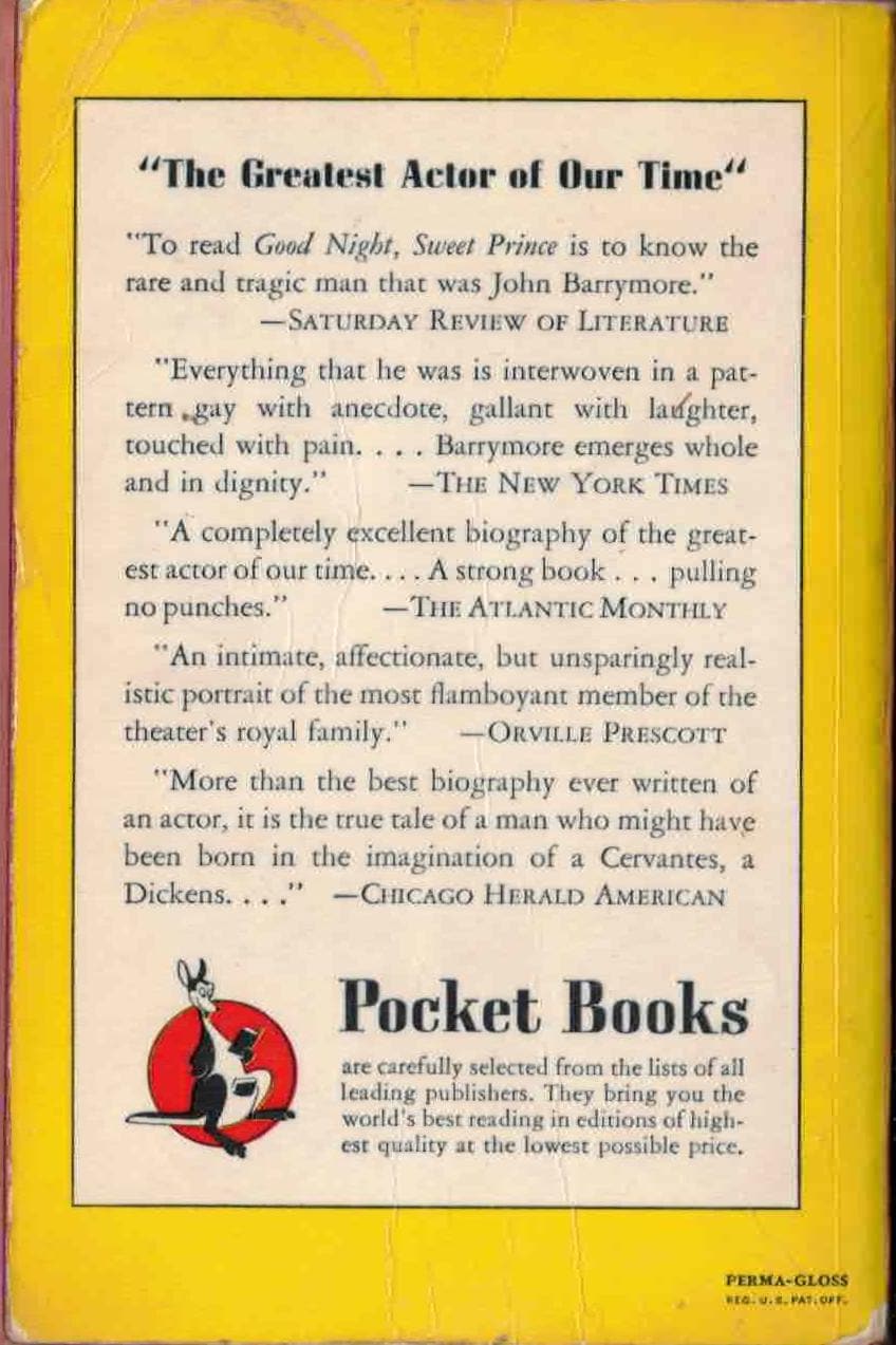 Pocket Books (1947). Cover photo of Barrymore. Mass market paperback.
