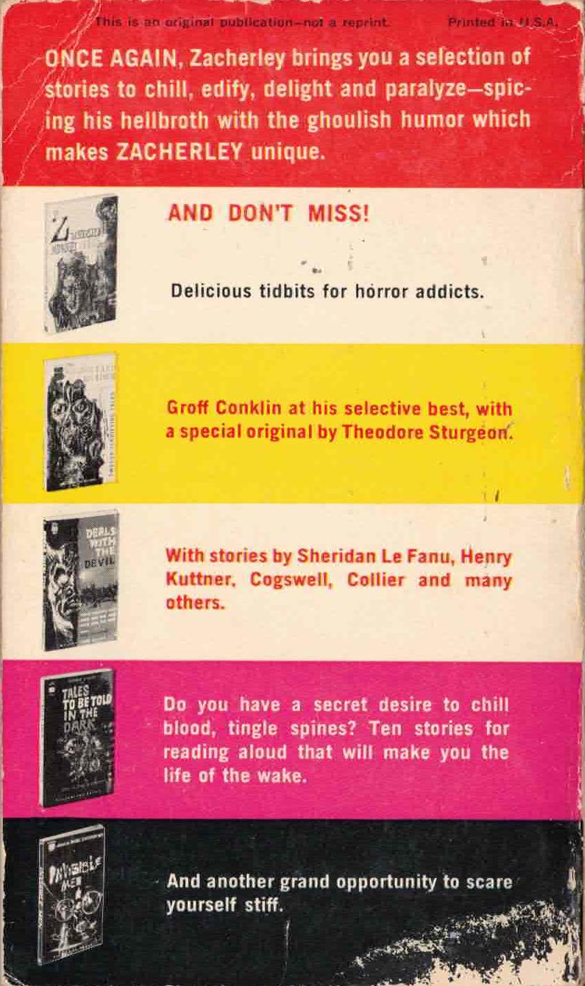 Ballantine (1962) Cover art by Richard Powers. Contains 9 horror stories from authors Wolheim, Hubbard, Van Vogt, Laumer, and others.