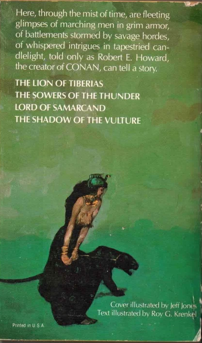 Zebra (1971) Cover art by Jeff Jones, Text illustrations by Roy G. Krenkel. First Printing. Mass market paperback. Contains four longish short stories.